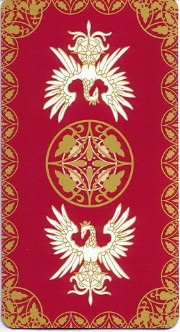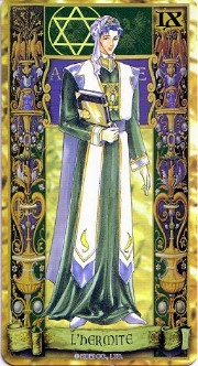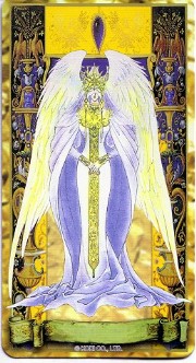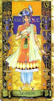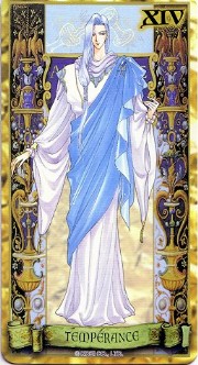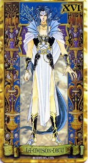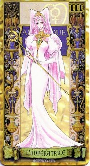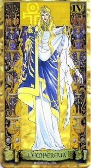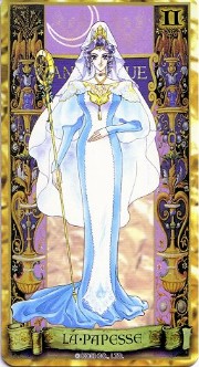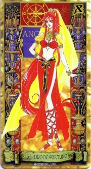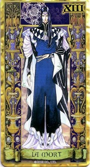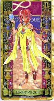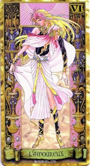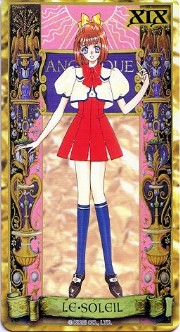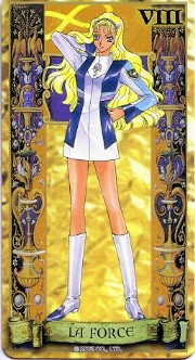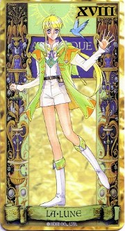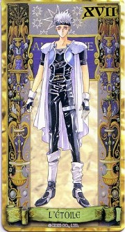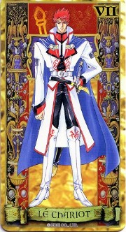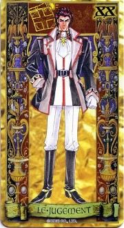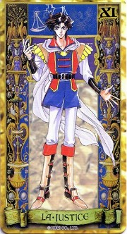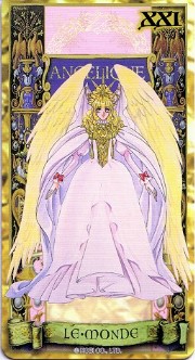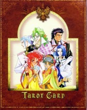 The beautiful Angelique tarot card set was released in November 1998 by Movic. It originally sold for a mere 2000 yen - these days, if you can get it for quadruple that price, you got a bargain. The set includes 23 cards - the 22 major arcana, and an extra card of the Queen before Limoges. The cards are printed on heavy, quality cardstock and come in a metal box with a book, all inside a cardboard slipcover. Unfortunately, the images are the standard Special 2 character designs, with a few older images thrown in for good measure (Sara, Pastha, Queen). Olivie must be a lonely Lover. ^.^ Some of the card designations are strange - it's like they matched up the obvious ones and then randomly filled in the rest. Clavis as Death I can buy; Rachel as Strength is another story...
